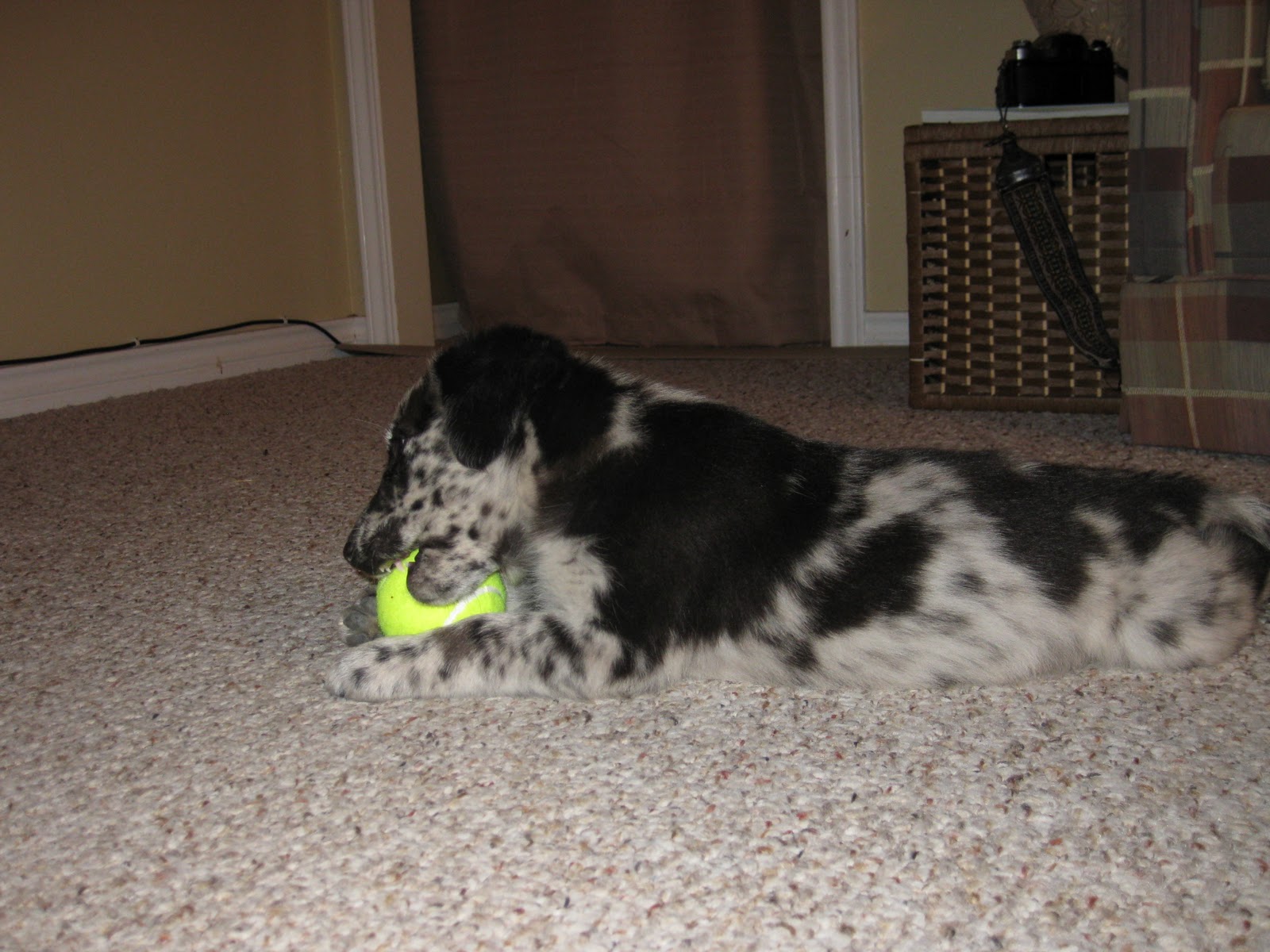 We've been wanting a puppy for a while now and finally decided to go look at the animal shelter. Right inside the door, there was a pen with three little female puppies that stole our heart! We took two of them outside to play and we knew we had to take this one home! Sasha is part Labrador- part Australian Shepherd. So cute!!